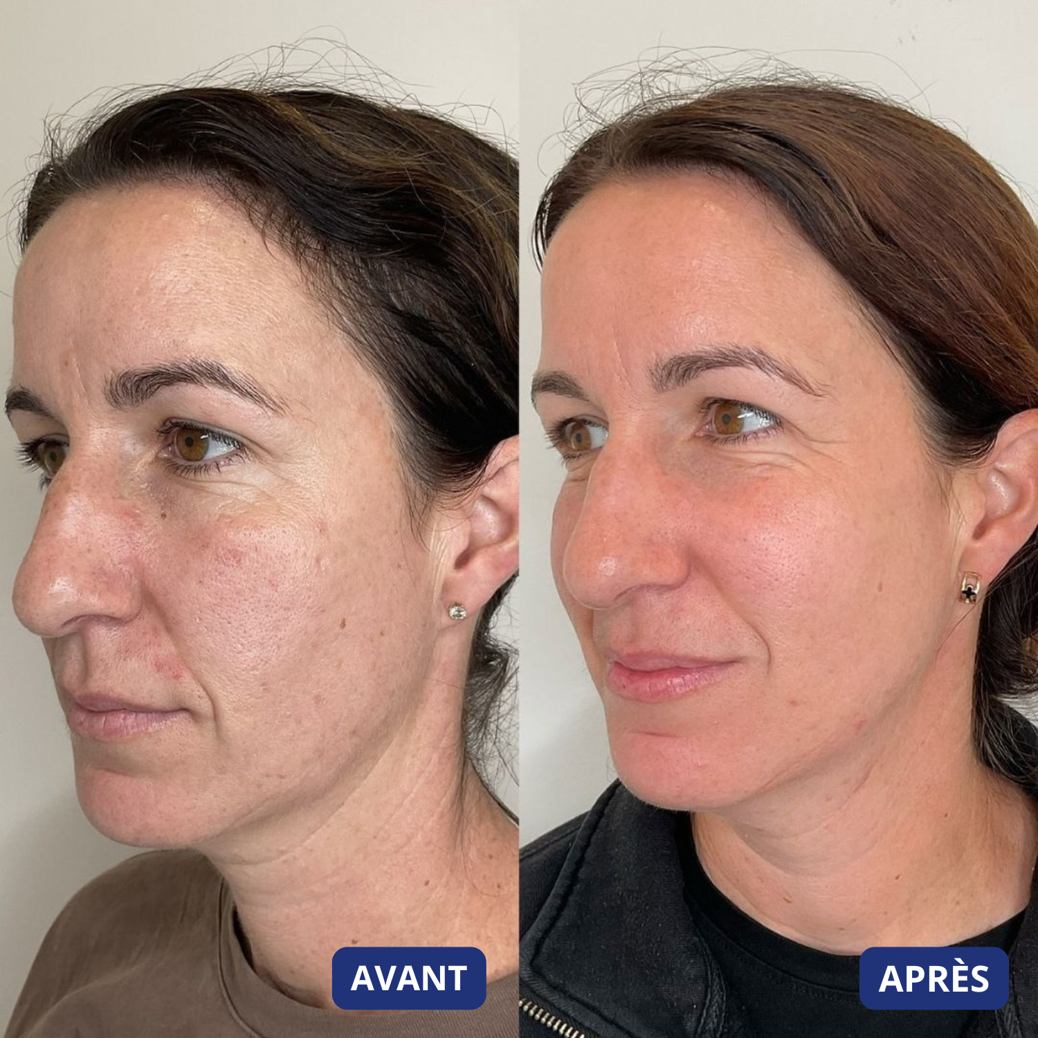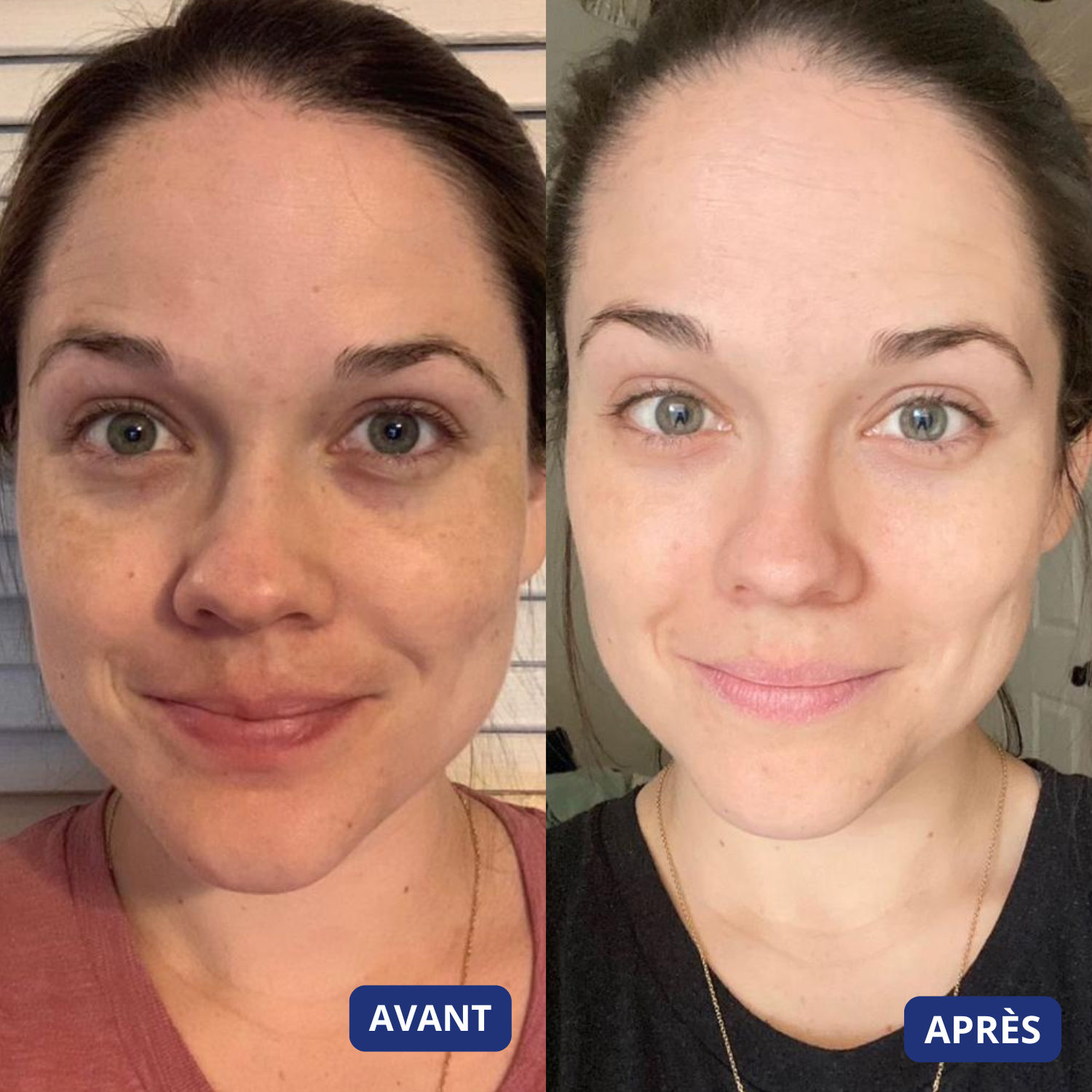 J'avais énormément detaches brunessur tout le visage et desrides très marquées, surtout autour des yeux. Après3 semaines avec Retigena, la transformation est impressionnante. Lestaches se sont nettement estompées, monteint est unifiéet lesrides se sont lissées. Mapeau est plus fermeet beaucoupplus lumineuse. Je ne pensais pas obtenir de tels résultats sans chirurgie.Je recommande vraimentce produit !