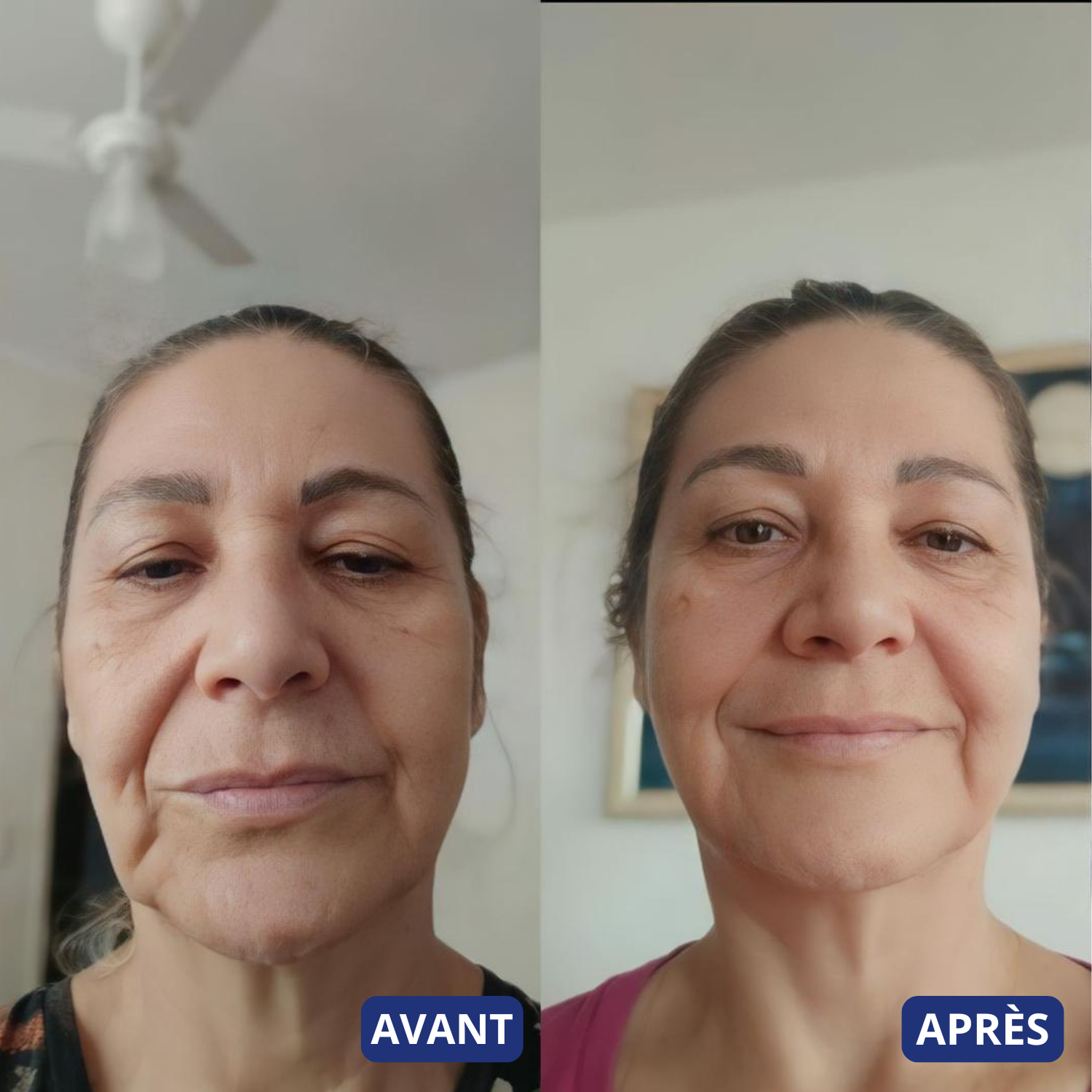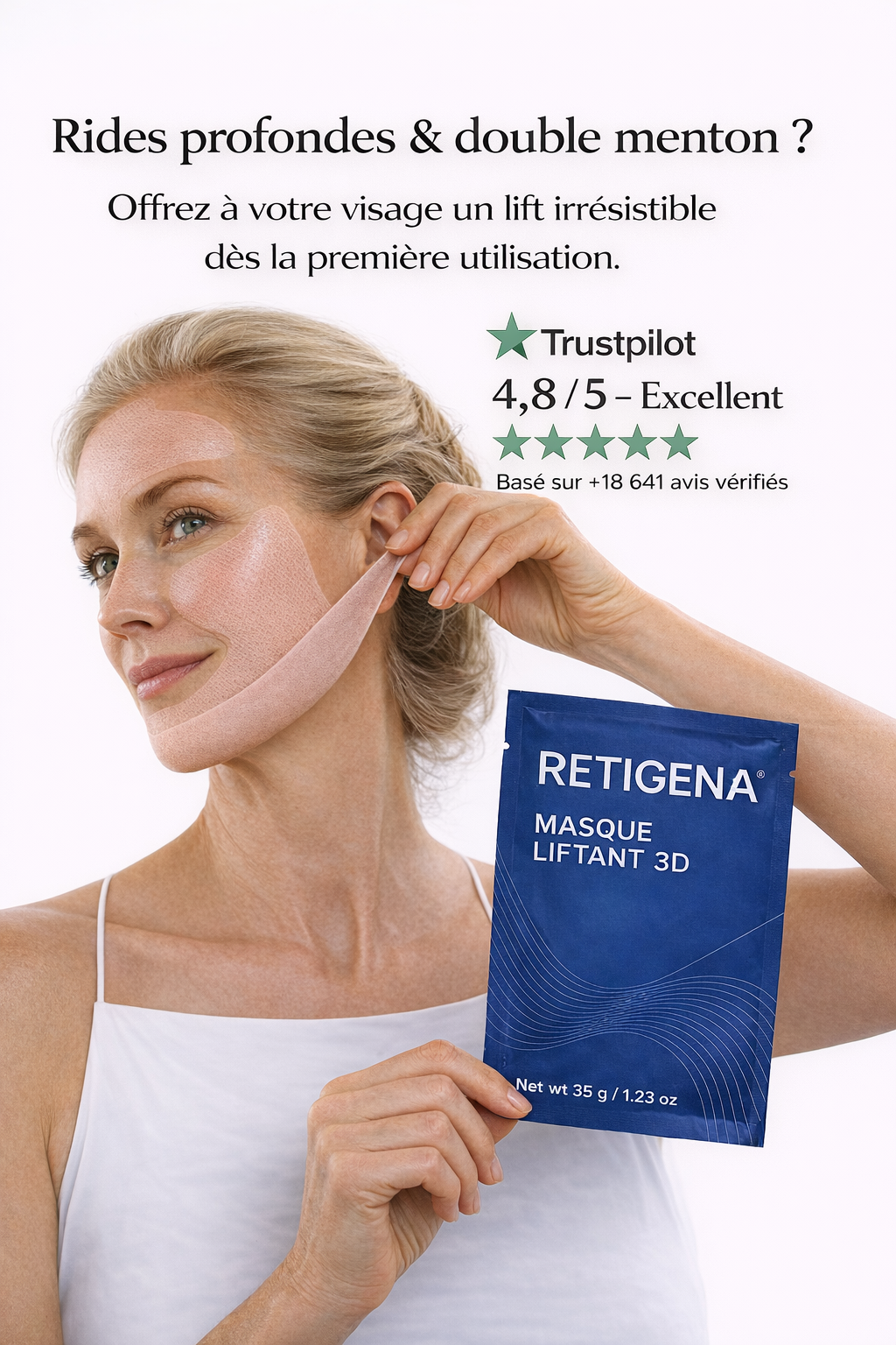 Les rides du front me complexaient énormément, ainsi que le relâchement du visage et du cou. Après un mois avec Retigena, la transformation est impressionnante. Les rides se sont nettement lissées, ma peau est plus ferme et le double menton a diminué. Mon teint est plus uniforme et lumineux. Je ne pensais pas obtenir de tels résultats sans chirurgie. En plus, la livraison a été ultra rapide et sécurisée, j'ai reçu mon colis en quelques jours. Je recommande vivement